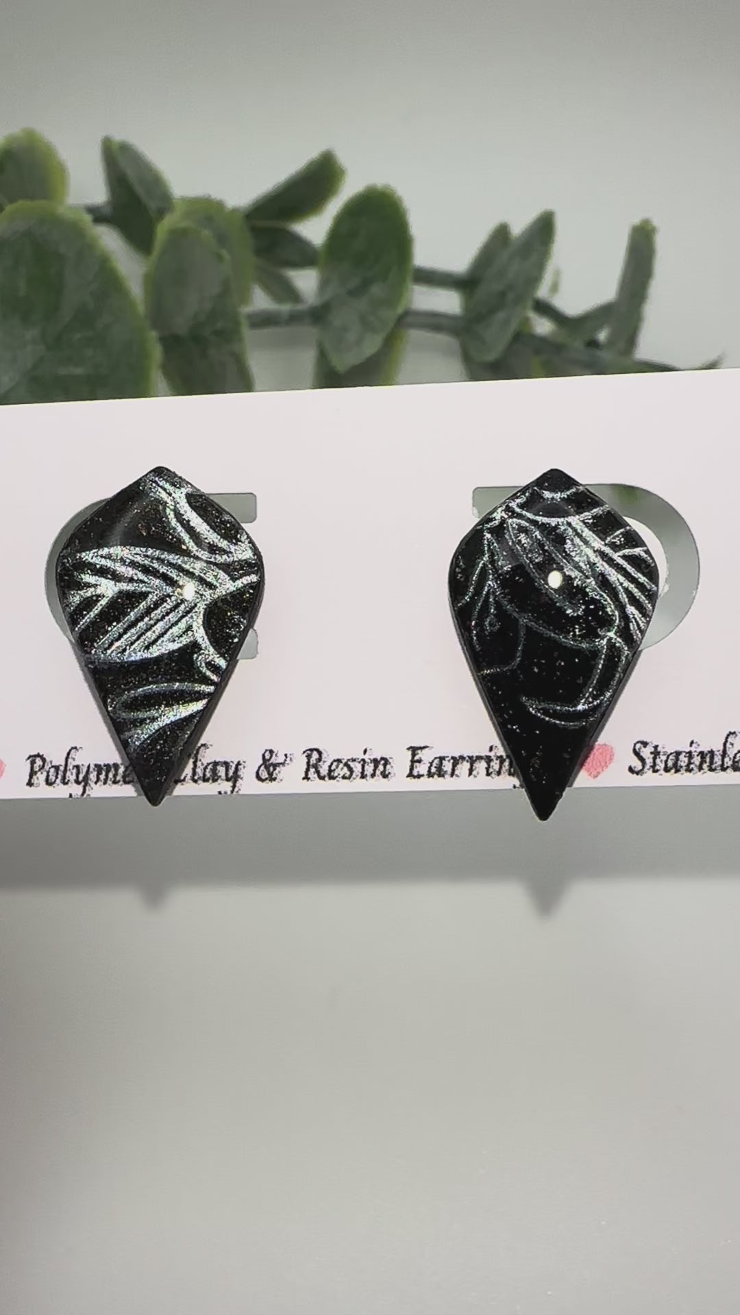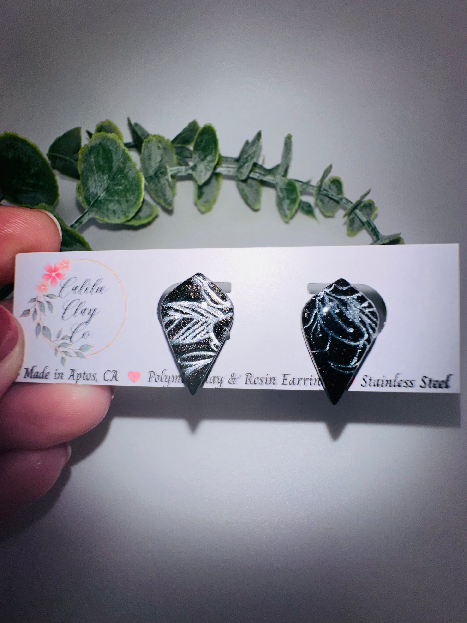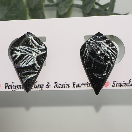Black Studs with Silver Leaf Imprint