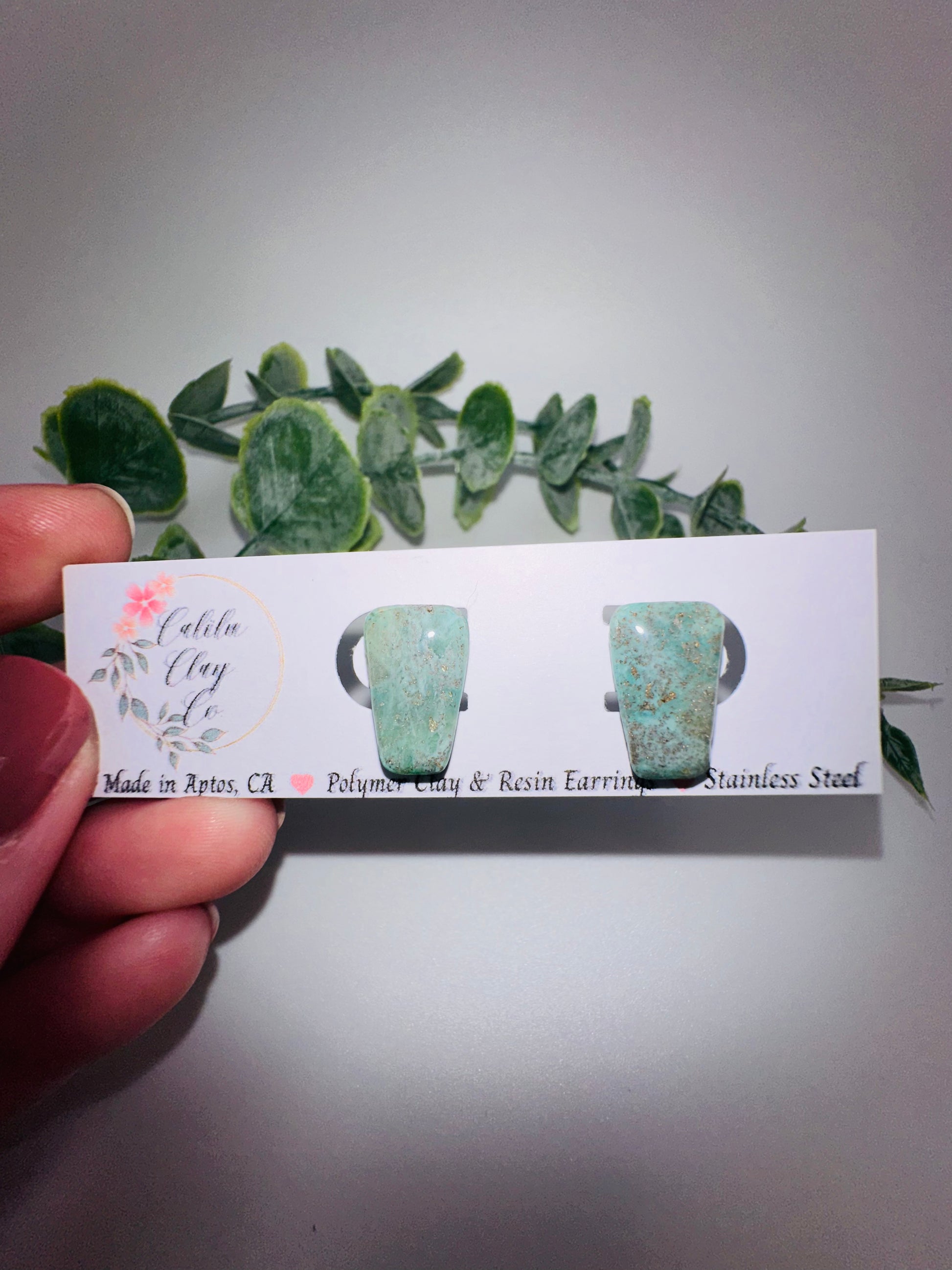Stainless Steel Posts embedded within clay for lasting strength and durability. Polymer clay (plastic) is what touches the ear.