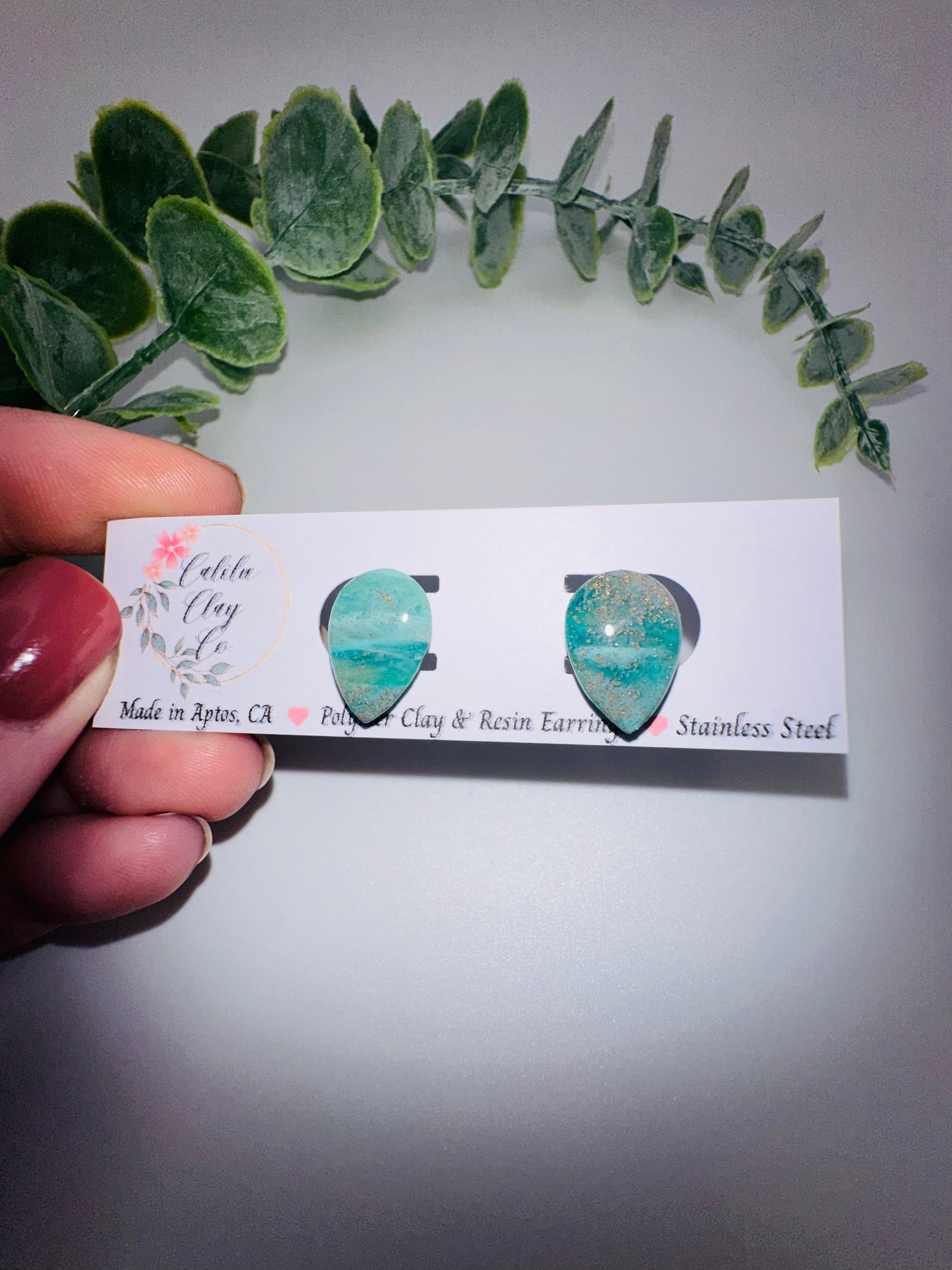 Stainless Steel Posts embedded within clay for lasting strength and durability. Polymer clay (plastic) is what touches the ear.