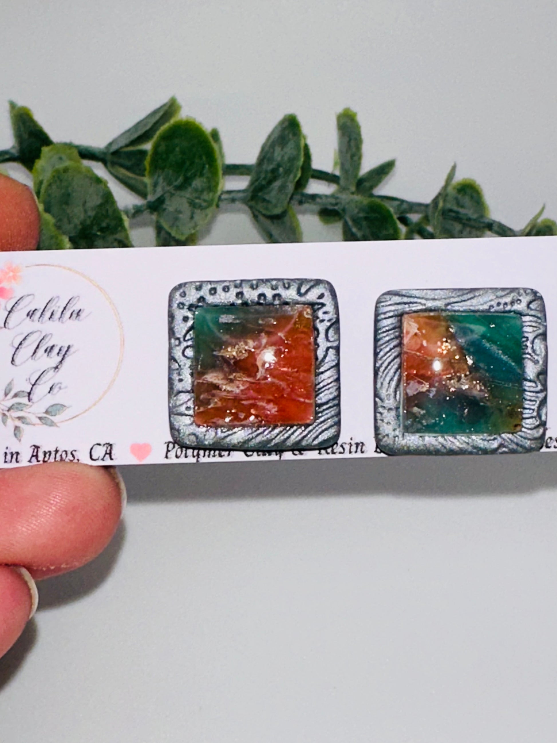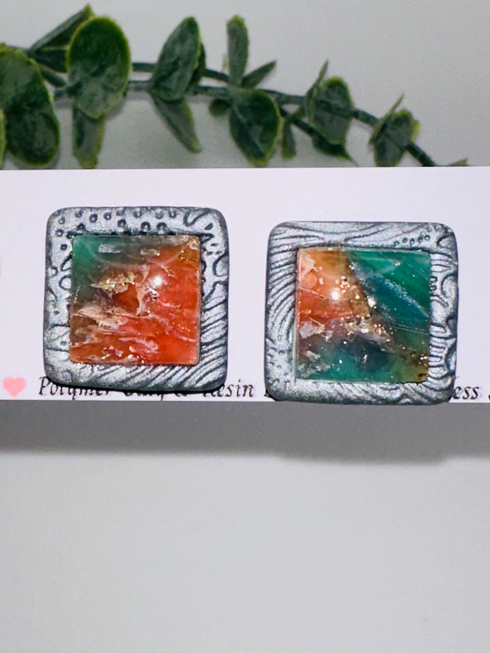 Unique, One-of-a-Kind, Handcrafted Polymer Clay and UV Resin Stud Earrings