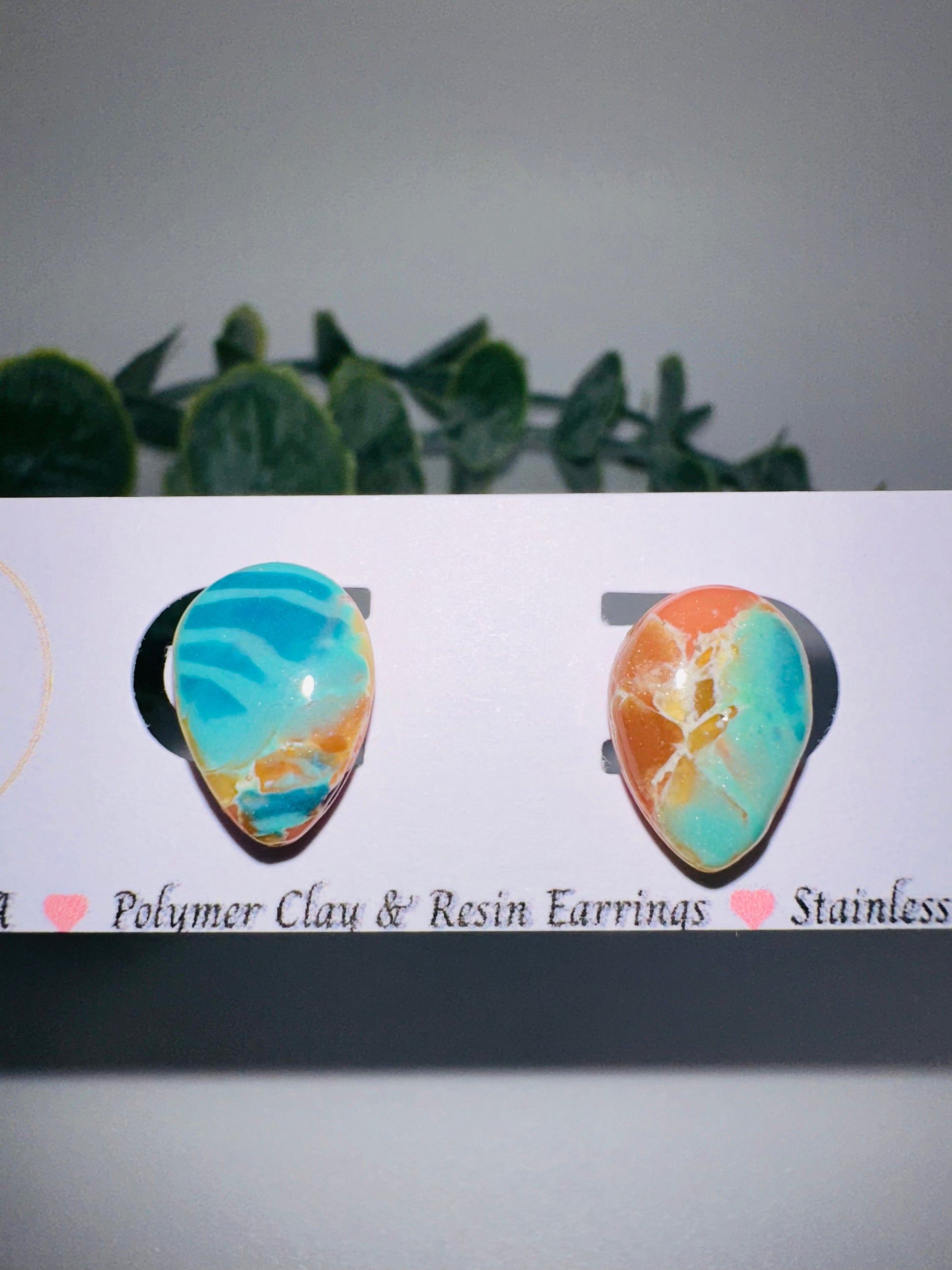 Unique, One-of-a-Kind, Handcrafted Polymer Clay and UV Resin Stud Earrings