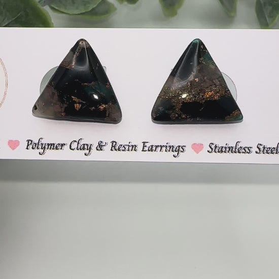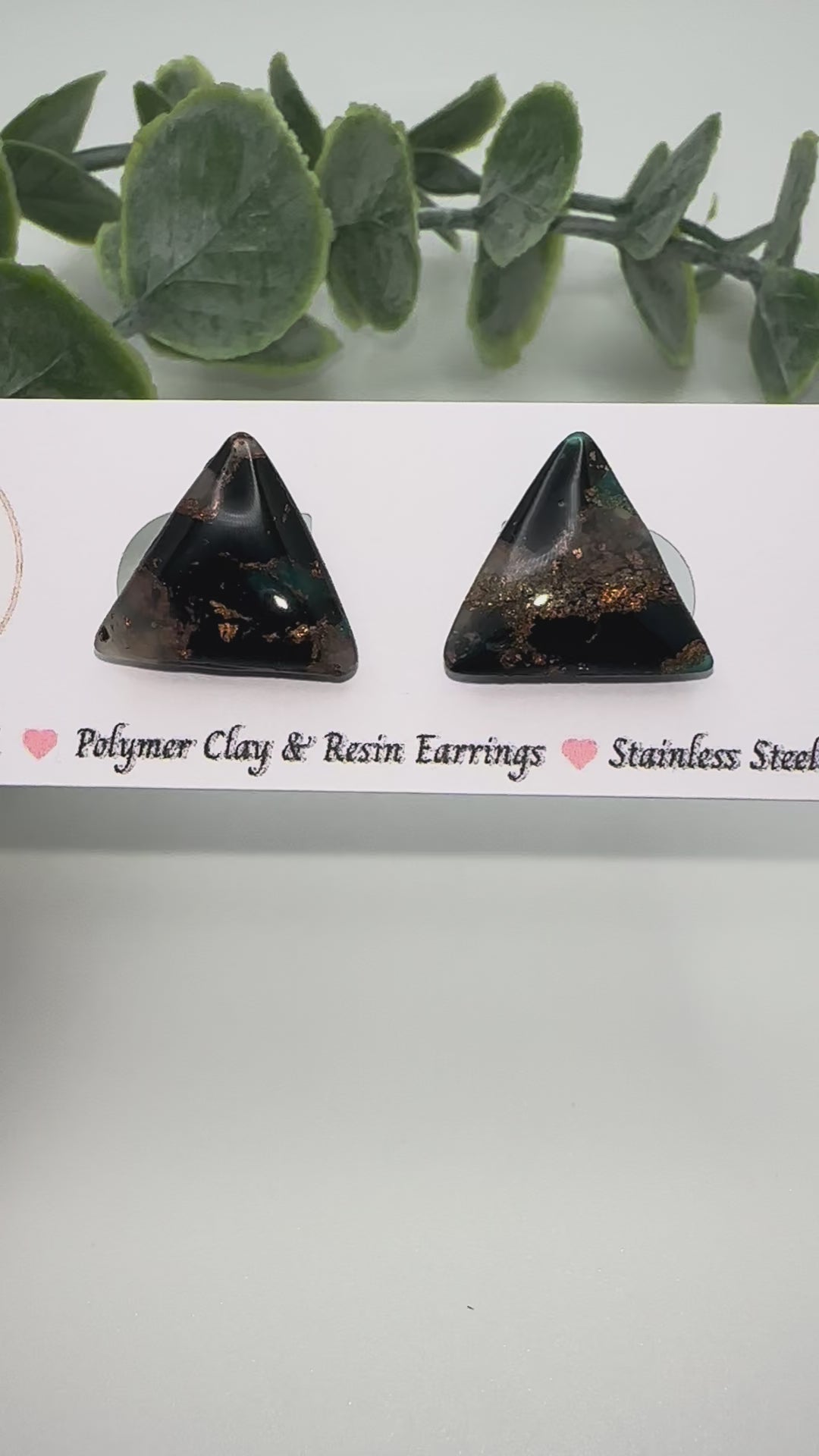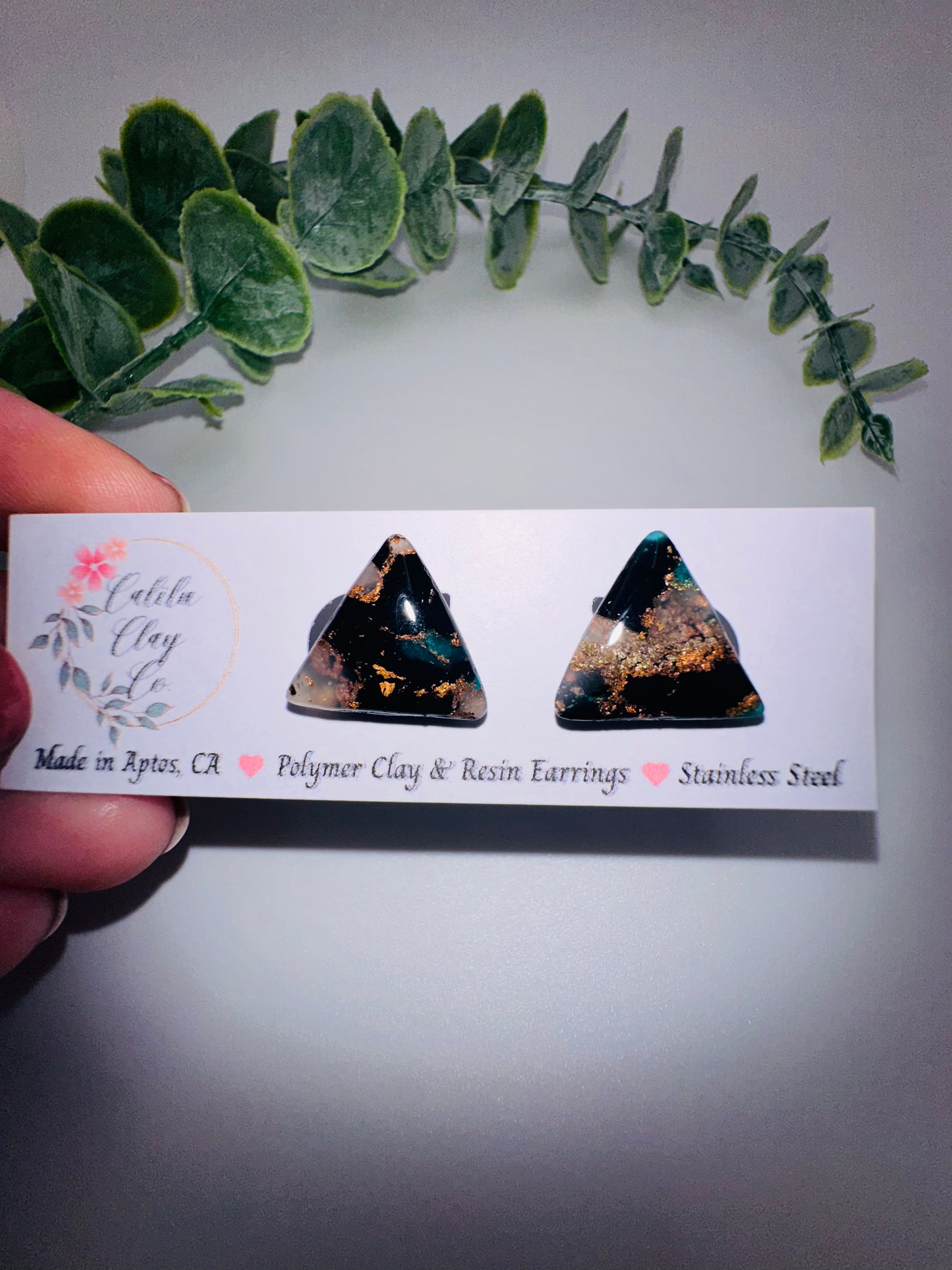 Organic Triangle Faux Stone with Amber, Black, and Teal clay marbled with Copper and Gold Leaf