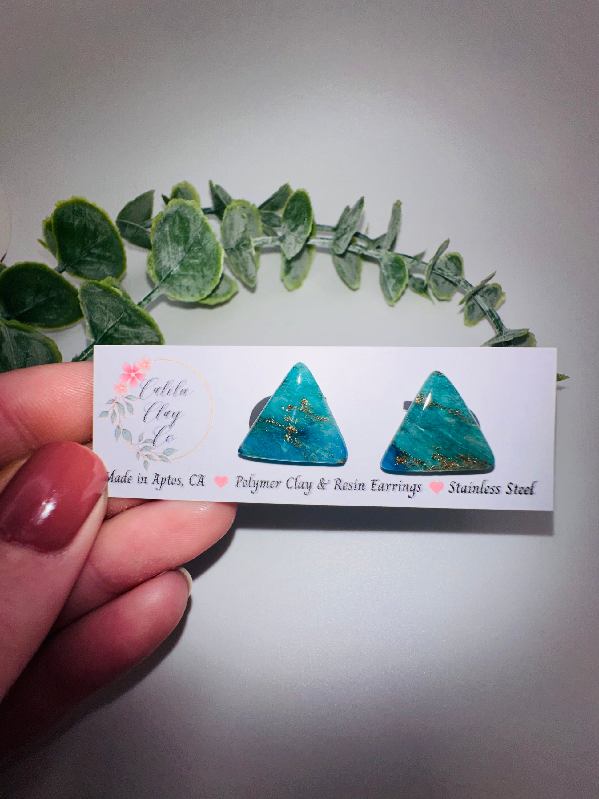 Stainless Steel Posts embedded within clay for lasting strength and durability. Polymer clay (plastic) is what touches the ear.