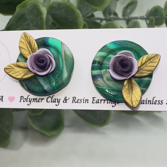Purple Rose Studs 2 with Marbled Green Bezel