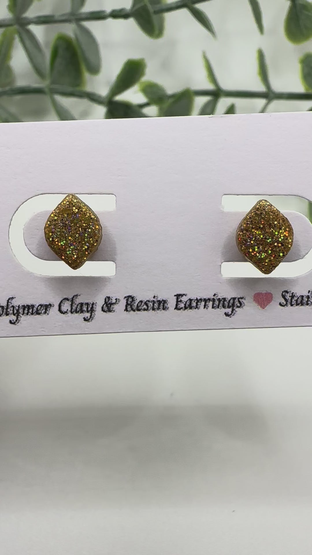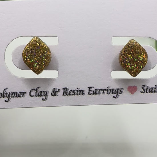 Unique, Handcrafted Polymer Clay earrings. Adorable, gold holographic rounded diamond studs - .25in, sealed with Brite Tone. These lightweight, adorable earrings will complement any outfit :)