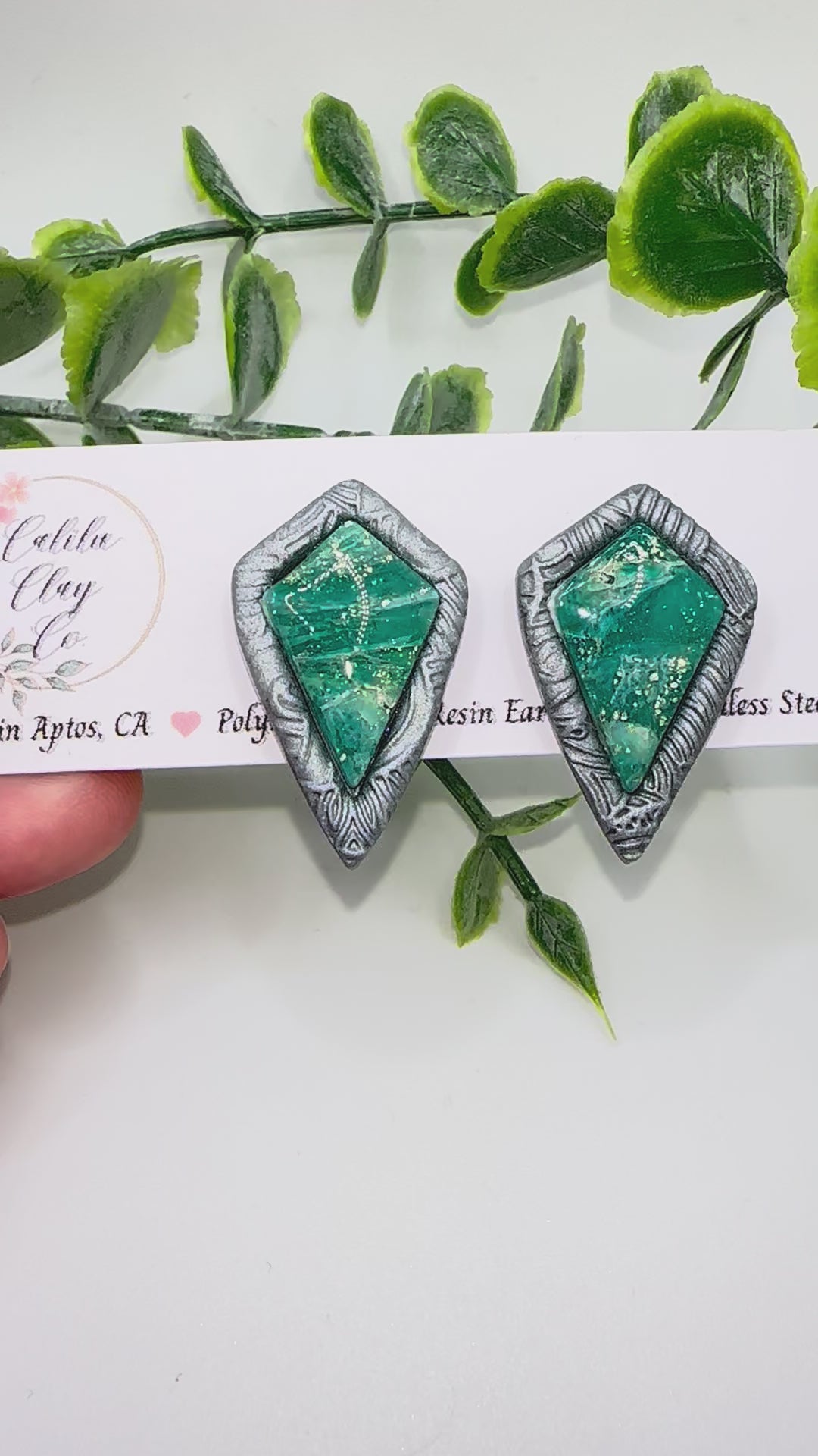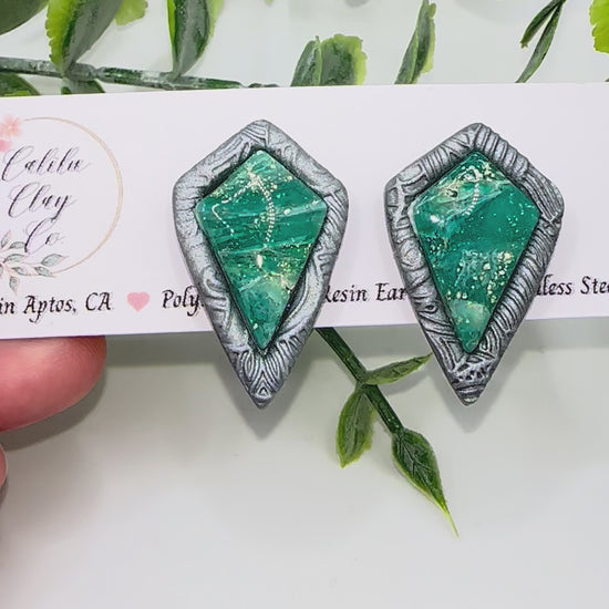 Unique, Handcrafted Polymer Clay and Resin Turquoise Ocean Inspired Shield Stud Earrings. These lightweight, adorable earrings will complement any outfit :)