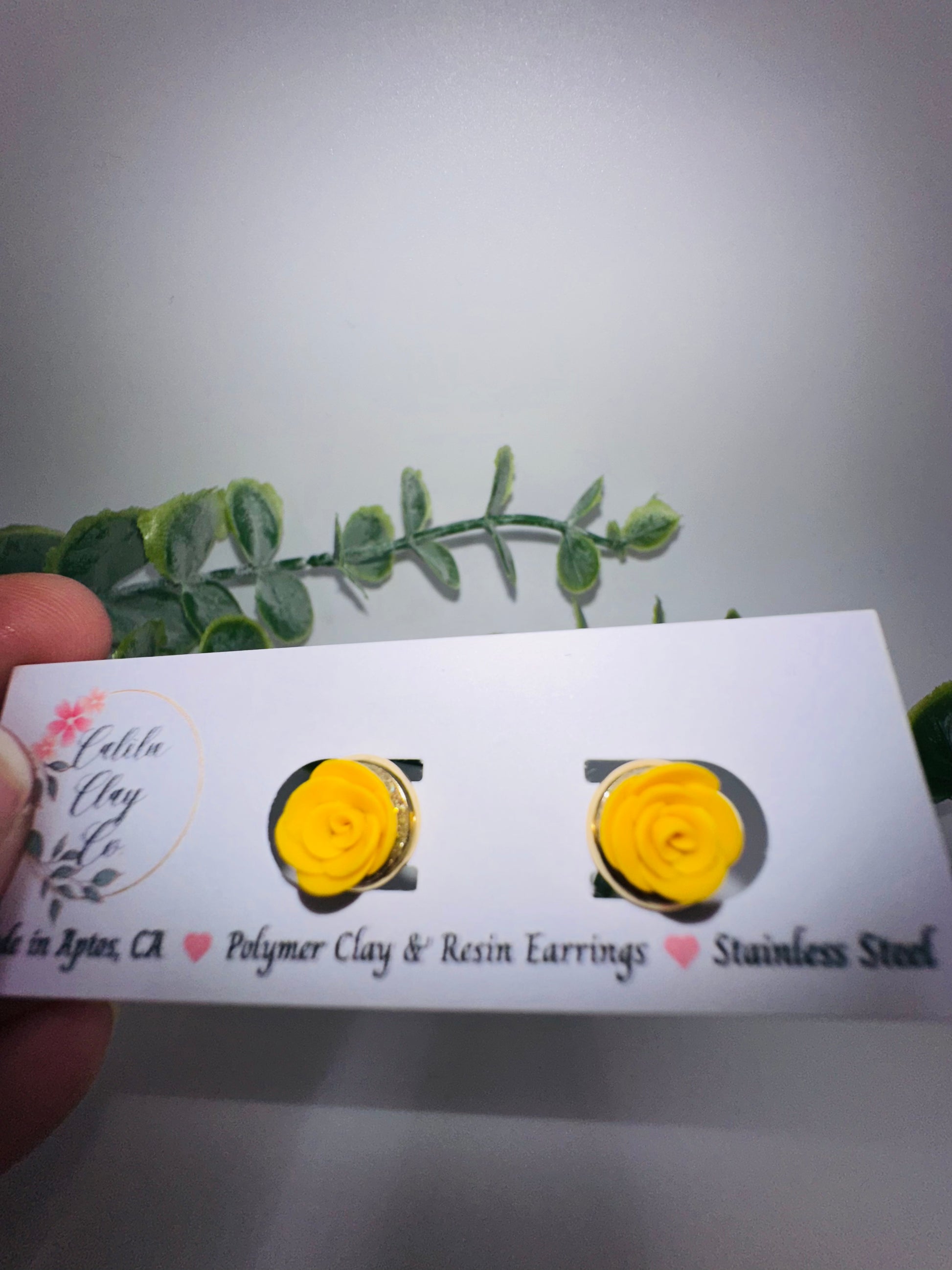 Unique, Handcrafted Polymer Clay earrings. Delightful, bright and sunny hand-sculpted yellow roses embedded in gold stainless steel posts. These lightweight, adorable earrings will complement any outfit :)