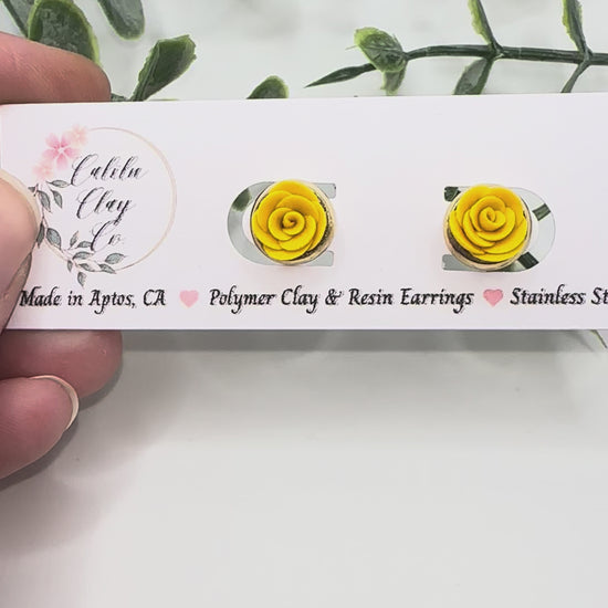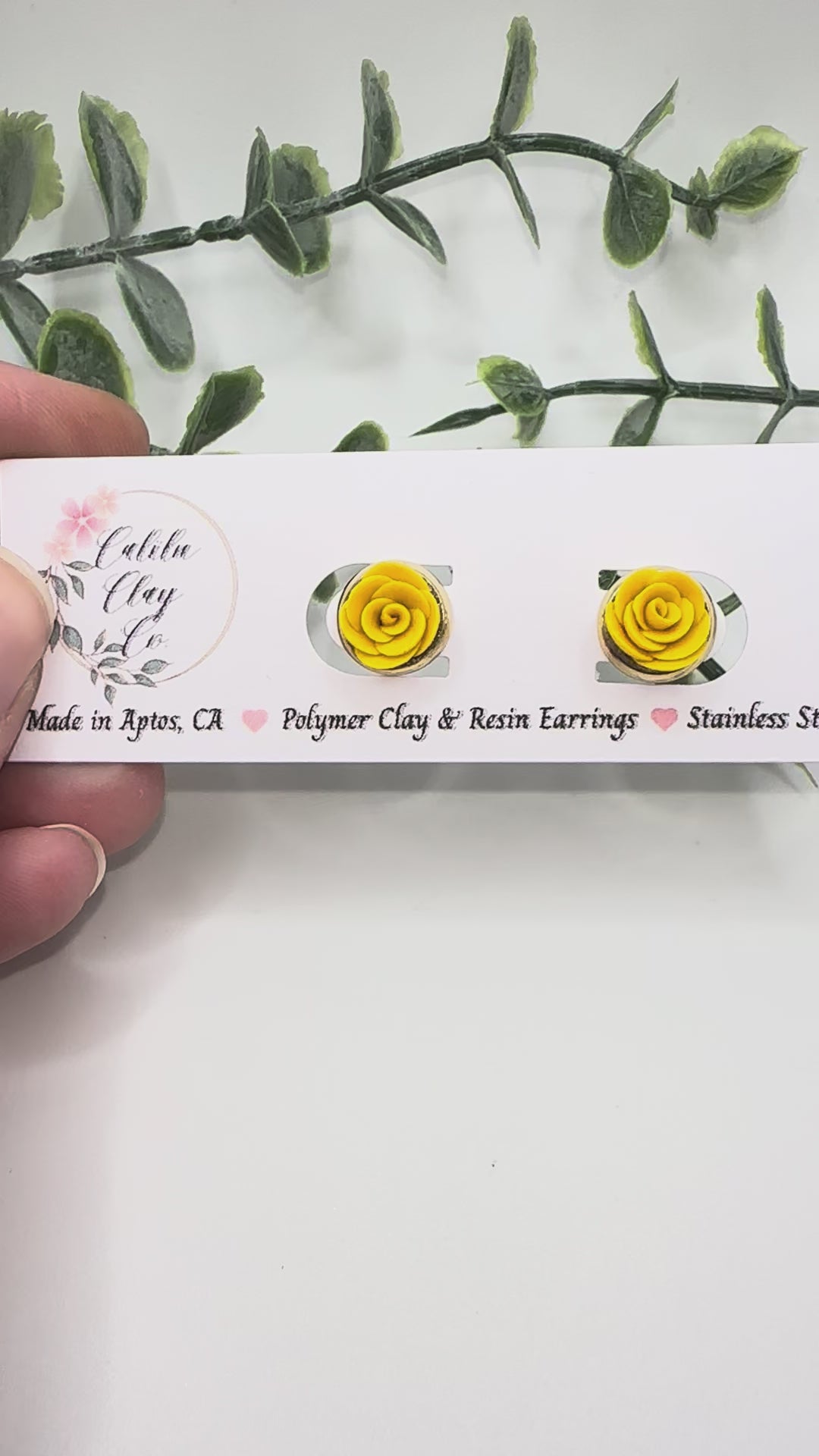 Yellow Hand-Sculpted Rose Studs / Post Earrings